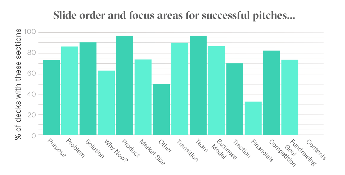 It’s a great idea to deliver all this information wrapped in a compelling story through a pitch deck, which should hold investors’ attention for about 3 and a half minutes, the average time spent by pre-seed investors reading a pitch deck, according to Docsend. Also, according to the report, the pitch deck should include the following slides: